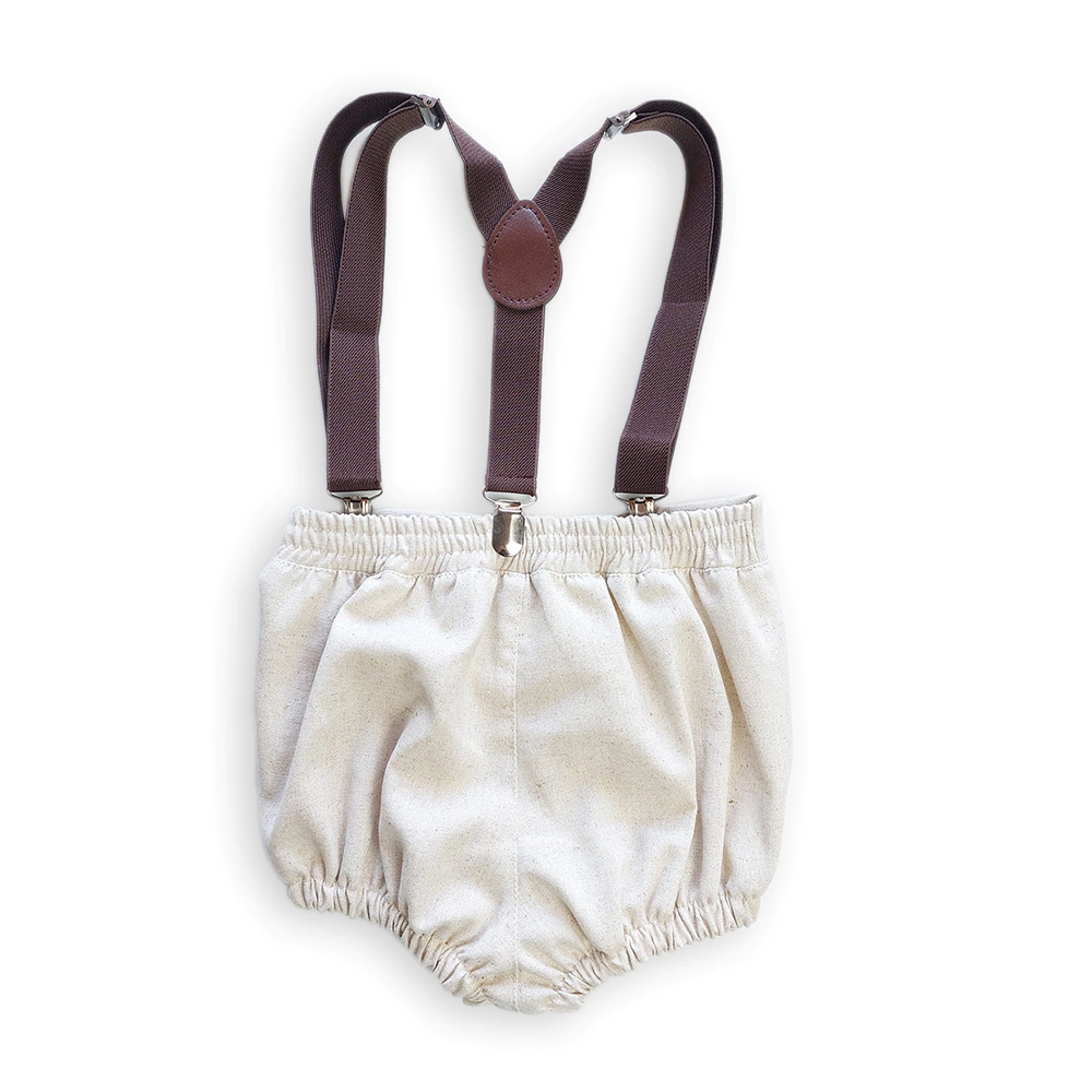 Estilo Elegante e Charmoso Este bloomer infantil de linho é uma peça de moda elegante e charmosa. O tecido de linho adiciona um toque sofisticado e clássico, enquanto o suspensório de elástico confere um ar retrô e divertido. Este bloomer é perfeito para ocasiões especiais ou para um dia casual na praia ou no parque. Certamente será um item que vai chamar a atenção e fazer o bebê se destacar.