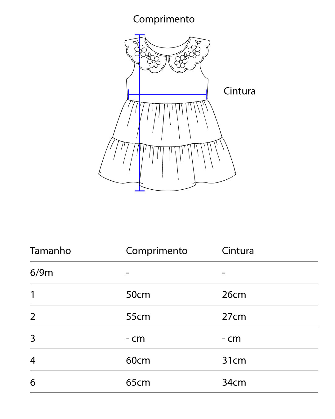 O destaque fica por conta da gola bordada, que traz um ar clássico e romântico à peça, valorizando ainda mais o visual das pequenas com elegância e simplicidade.